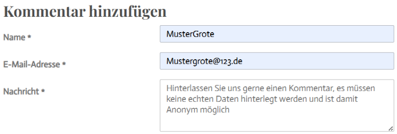 Leider ist es notwendig eine E-Mail Adresse zu hinterlegen, eine Anonymität ist möglich, indem Sie eine fiktive E-Mail Adresse angeben (siehe folgende Abbildung).